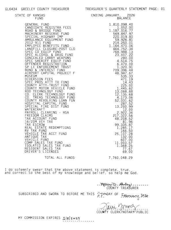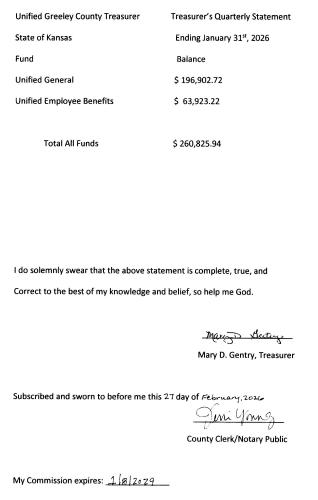 (Published in the Greeley County Republican on February 4, 2026) LEGAL NOTICE IN THE MATTER OF THE 2026 ANNUAL MEETING AND THE REGULAR MARCH BOARD MEETING FOR THE WESTERN KANSAS GROUNDWATER MANAGEMENT DISTRICT NO. 1 OF LANE, SCOTT,... [More]